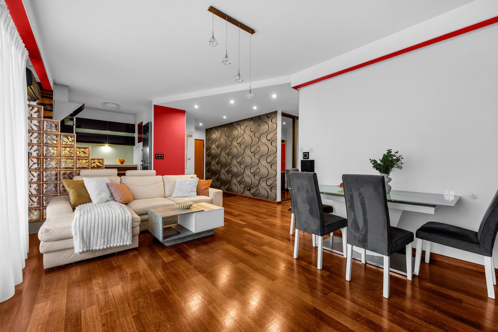 - duży salon z aneksem kuchennym – serce domu, gotowe na rodzinne kolacje i weekendowe lenistwo,