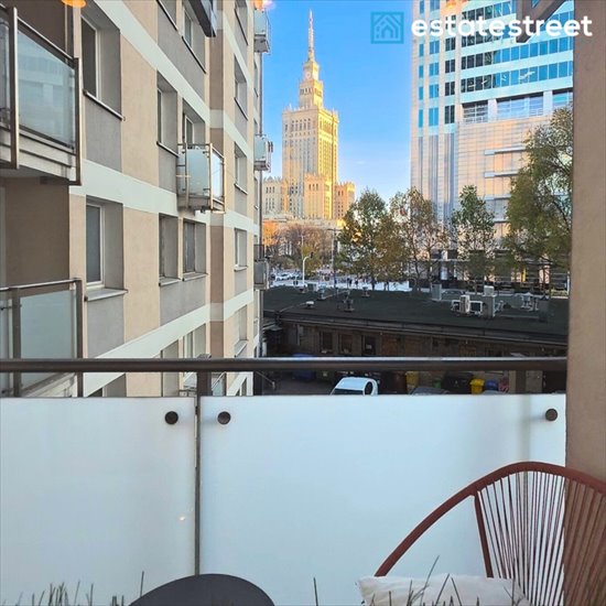 oraz balkonu z widokiem na Pałac Kultury i Nauki.