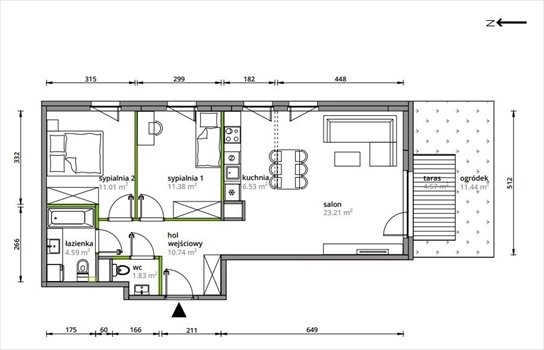 + Ogródek (11,44 m2) w tym taras (4,57 m2)
