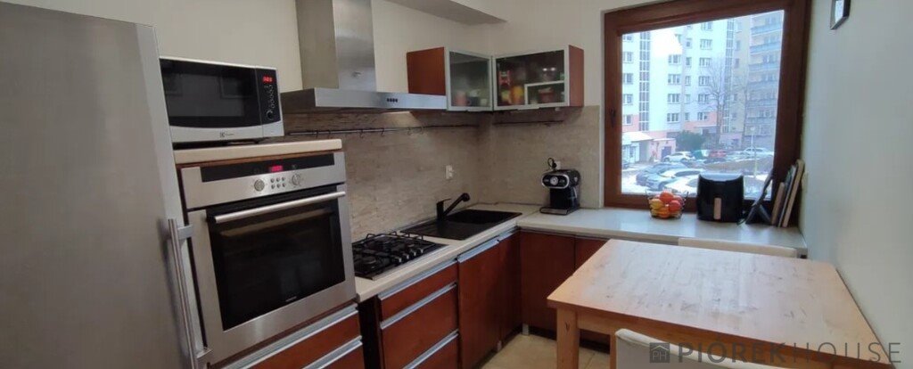 -oddzielnej, jasnej kuchni ok. 7,5 m² z zabudową z litego drewna oraz sprzętem AGD w zabudowie,