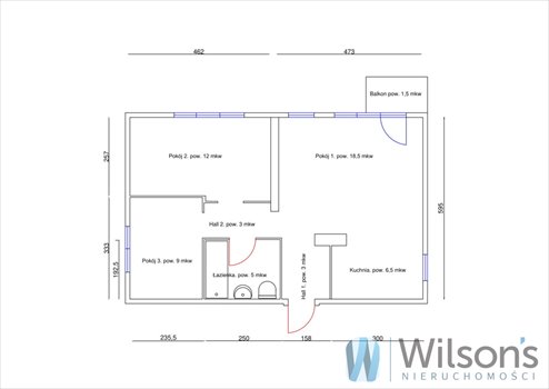 a także przedpokój (6 m²) , balkon (1,5 m²) i piwnica.