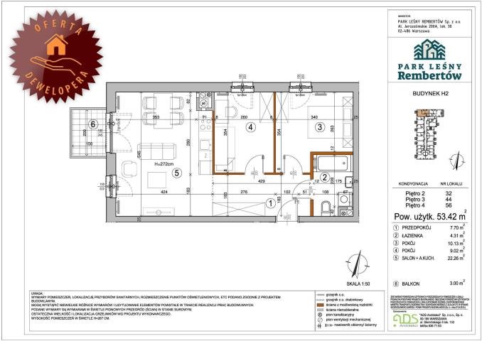 - Powierzchnia całkowita53,42 m2