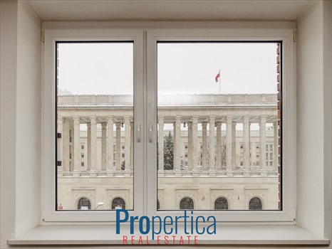 Z oknem wychodzącym na spokojną ul. Wspólną z wyjątkowym widokiem na kolumnadę oraz gmach Ministerstwa Rolnictwa.