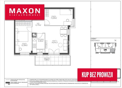 salon / pokój dzienny – 14,84 m²kuchnia z oknem – 5,30 m²
