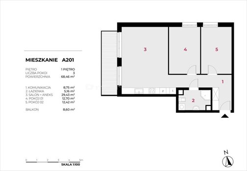 - Powierzchnia całkowita68,46 m2