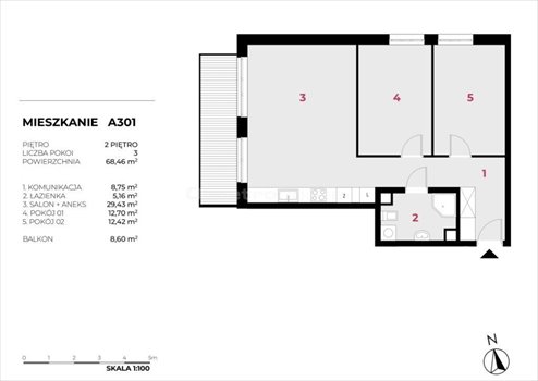 - Powierzchnia całkowita68,46 m2