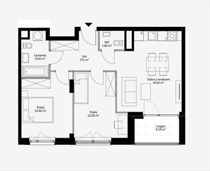 - Powierzchnia całkowita58,16 m2
