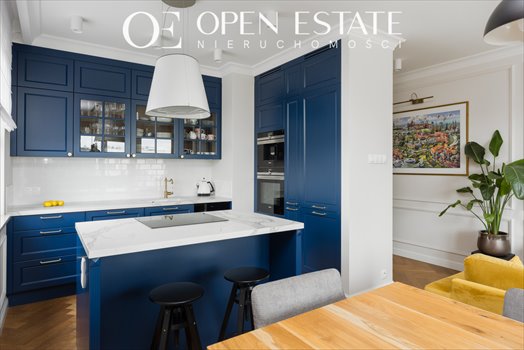 Mieszkanie wyróżnia się wysoką jakością wykończenia z dbałością o detale. Kupione od dewelopera w 2020 roku i wykończone w wysokim standardzie wg. projektu przez firmę KODO (dostępna jest dokumentacja projektowa). Drzwi wejściowe antywłamaniowe. Duże przeszklenia, okna o wysokiej izolacji termicznej i akustycznej. Designerskie oświetlenie w technologii LED. Dobrze zagospodarowana przestrzeń i komfortowy układ mieszkania. Na podłogach wysokiej jakości parkiet marki Kaczkan. Salon połączony jest z kuchnią i jadalnią. Wyjście na ustawny balkon z widokiem na otwartą przestrzeń z drzewami i zielenią. W przestronnej kuchni szafki na wymiar. Kuchnia w pełni wyposażona w wysokiej jakości markowy sprzęt, między innymi płyta indukcyjna Bosch, piekarnik Siemens, duża lodówka z zamrażarką Amica, duża zmywarka Amica, ekspres do kawy w zabudowie Siemens oraz lodówka na wina marki Haier. W przestronnej i ustawnej sypialni znajduje się duże łózko oraz duża zabudowa wg. indywidualnego projektu. Kolejny pokój, który może pełnić funkcję gabinetu lub pokoju gościnnego z dużą zabudową meblową wg. indywidualnego projektu. W łazience znajduje się zarówno wanna jak i prysznic. Bardzo dobrze rozwiązana kwestia przechowywania, oprócz licznych mebli w zabudowie w mieszkaniu znajduje się także oddzielna garderoba z pralnią.