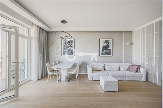 This modern flat is located on the 7th floor of a building at Rydygiera Street in Warsaw's Żoliborz district.