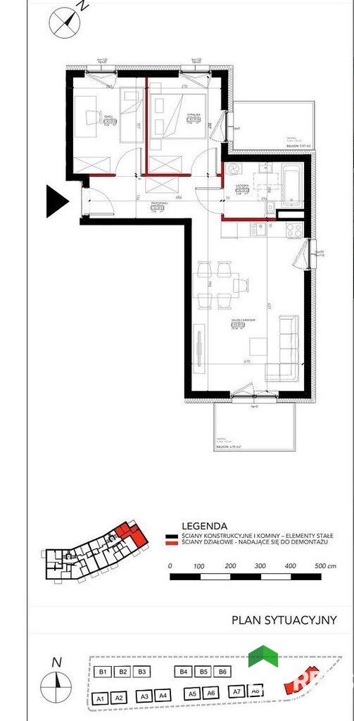 Do lokalu przynależą 2 balkony (łącznie 10m2).