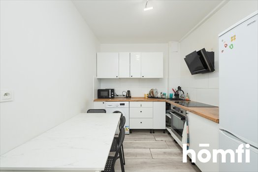• Kuchnia (bez okna) w pełni wyposażona: lodówko-zamrażarka, piekarnik, okap, płyta indukcyjna, zlewozmywak, mikrofala, pralka, stół z 4 krzesłami