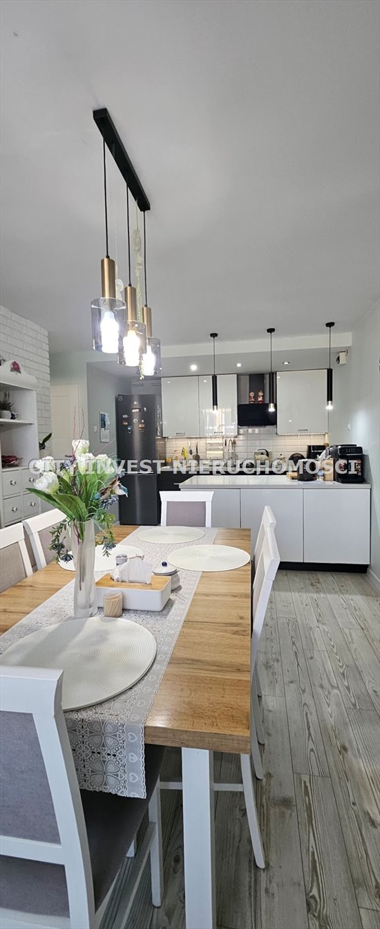 Na podłogach panele i płytki. W cenie mieszkania zostają; kuchnia w zabudowie wraz ze sprzętem AGD, szafy wnękowe, łazienki z wyposażeniem.