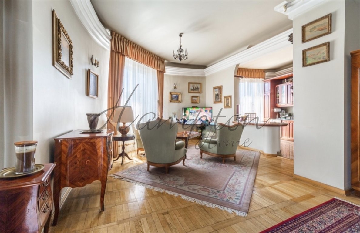 Mieszkanie wykończone zostało w klasycznym, ponadczasowym stylu, z dużymi oknami i widokiem na zieleń Dolnego Mokotowa. Przemyślany układ pomieszczeń zapewnia wyraźny podział na reprezentacyjną strefę dzienną oraz komfortową, prywatną część nocną.