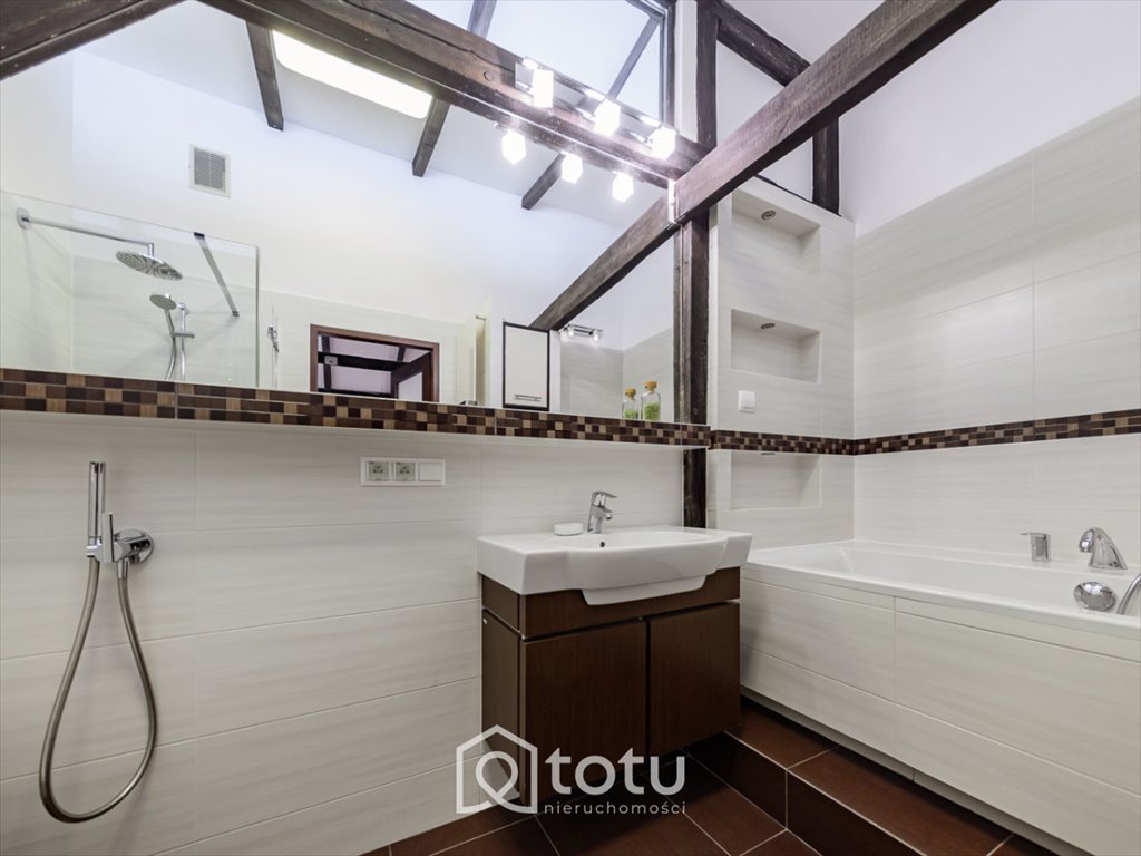 - łazienka wyposażona zarówno w wannę, jak i prysznic