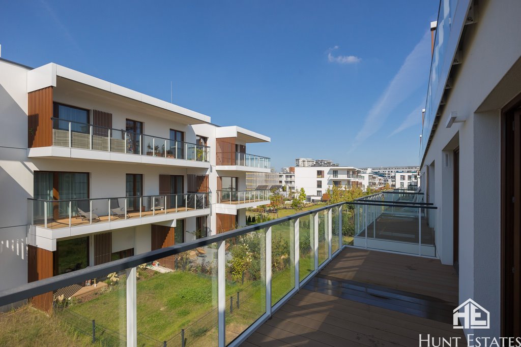 Inwestycja wyróżnia się nowoczesną, minimalistyczną architekturą oraz elegancką zabudową składającą się z niskich, dwupiętrowych budynków. Starannie zaprojektowana zieleń, wewnętrzny ogród oraz bezpieczny plac zabaw podkreślają prestiżowy i przyjazny charakter osiedla. Okolica zachwyca spokojem, a jednocześnie zapewnia wygodę codziennego życia — w sąsiedztwie znajdują się szkoły, przedszkola, restauracje oraz tereny rekreacyjne.