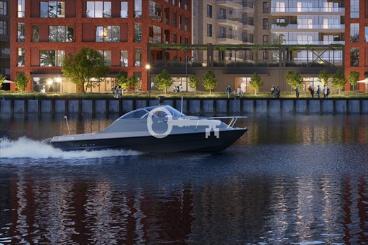 Along the river, between the buildings and the waterfront, an elegant pedestrian and cycling boulevard is planned, enriched with thoughtfully designed greenery and artistic elements highlighting the unique character of this location. The ground floors will feature commercial and gastronomic premises - restaurants and cafés - bringing vibrancy and energy to the area.