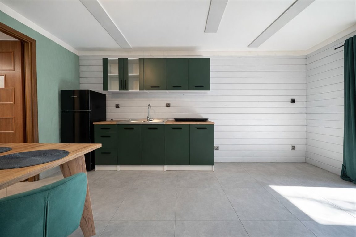 W skład wchodzą 2 pomieszczenia, jedno z aneksem kuchennym oraz łazienka z WC oraz kabiną prysznicową