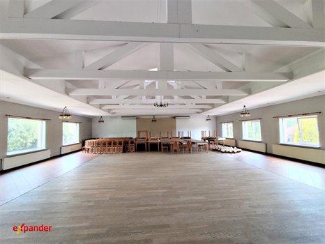 Budynek główny parter to: sala eventowa na ok. 150 osób, zaplecze restauracyjno-gastronomiczne, zaplecze socjalne, kotłownia, toalety dla gości i pracowników, wejście od parkingu z dużą witryną...zewnętrznie dodatkowa przestrzeń do wykorzystania jako ogródek letni a także możliwość powiększenia posesji. Budynek posiada aktualny audyt elektryczny.