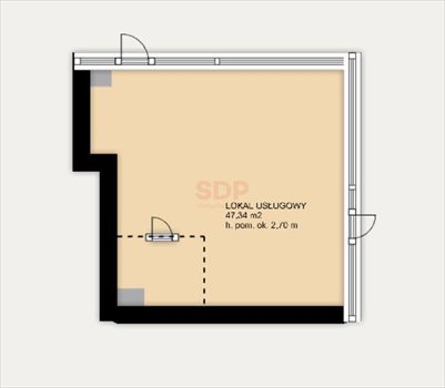- Lokal o powierzchni 47,34 m2 znajduje się na parterze