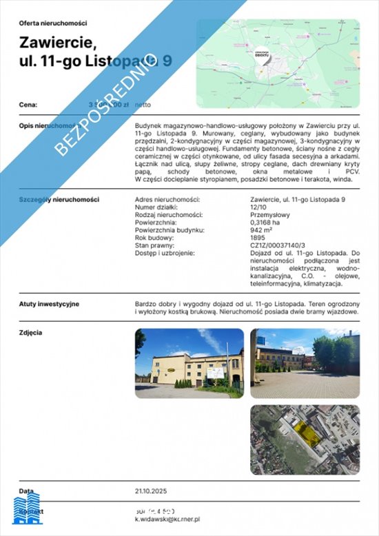 Adres nieruchomości: Zawiercie, ul. 11-go Listopada 9
