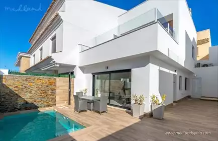 This new development of detached villas in San Pedro del Pinatar is located in the Lo Pagán area, just 3.5 km from the beaches o...