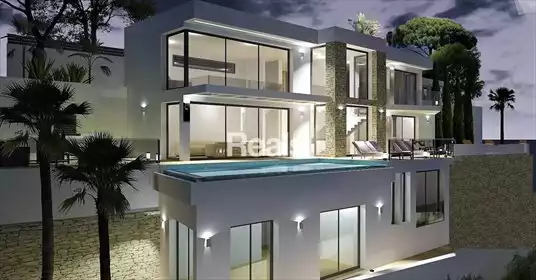 Nowa willa w nowoczesnym stylu w Moraira z pięknym panoramicznym widokiem na morze w kierunku Calpe, Altea i Benidorm ze wszystk...