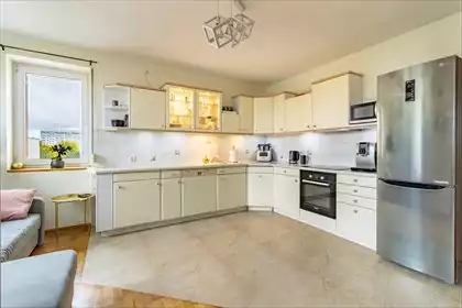 Kiedy otwierasz drzwi tego mieszkania, witają Cię znajome zapachy — mieszanka świeżo zaparzonej kawy i starego drewna. W słońcu ...