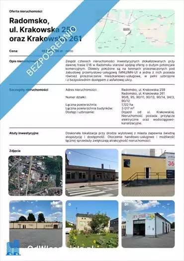 Na sprzedaż unikalna nieruchomość położona w centrum Radomska, przy ul. Prymasa Wyszyńskiego - idealna propozycja dla inwestorów...