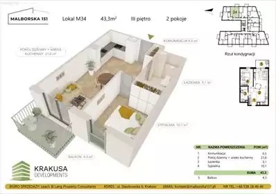 Biuro sprzedaży nowej inwestycji pod nazwą Malborska 151 ma zaszczyt przedstawić komfortowe mieszkanie na sprzedaż, zlokalizowan...