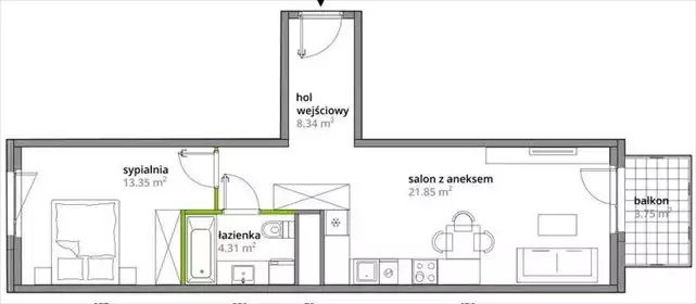 Na sprzedaż 2-pokojowe mieszkanie 40,04 m2, piętro 2/4 z windą w budynku z 2021r., Praga Południe-Grochów.Sprzedawane z wyposaże...