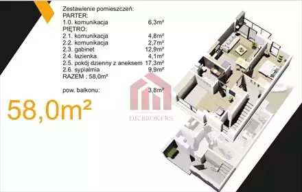 Biuro Stoprocent Nieruchomości przedstawia trzypokojowe mieszkanie o powierzchni 50.94 m2 z ponad 30m2 ogrodem oraz zewnętrznym ...