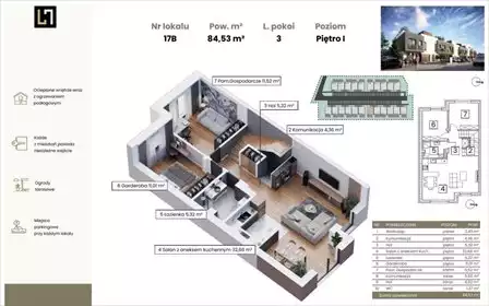 Na sprzedaż Nowe Energooszczędne mieszkanie 4 pokojowe o powierzchni 80 m2 + dodatkowo 35 m2 poddasza! Nieruchomość położona je...