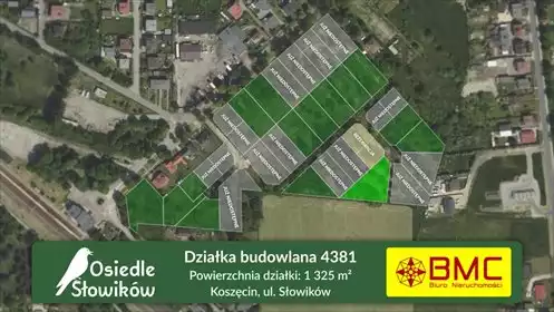 Biuro Nieruchomości BMC oferuje na sprzedaż działkę budowlaną przy ulicy Słowików (boczna od ulicy Dworcowej) w miejscowości Kos...
