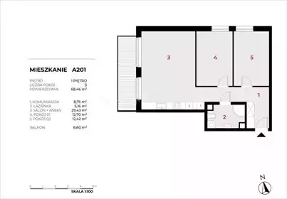 Na sprzedaż nowe 3-pokojowe mieszkanie o pow. 65,99 m2 + 2 balkony, na 4 piętrze 4-piętrowego nowego budynku z windą, znajdujące...