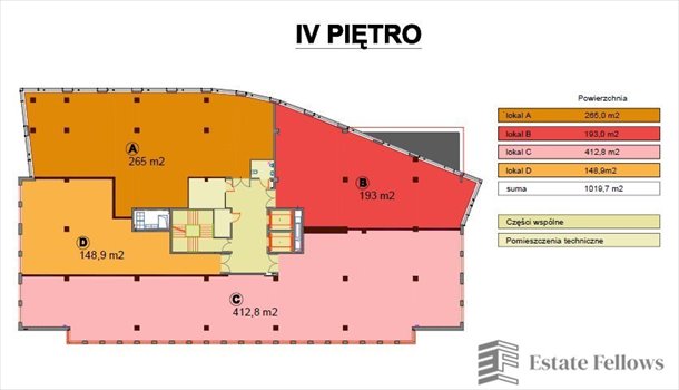 Do wynajęcia całe piętro w biurowcu przy ul. Kamieńskiego - istnieje możliwość podziału na mniejsze moduły: 149m2, 193m2, 265m2, 413m2.