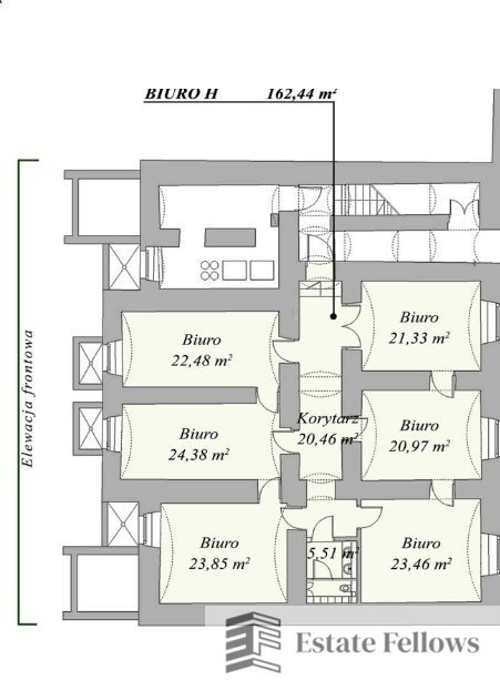 Odrestaurowany XIX-wieczny budynek oferuje ok. 900m2 atrakcyjnej powierzchni biurowej, która została unowocześniona, jednak zachowała dawny klimat. Obiekt znajduje się w samym centrum Krakowa. W sąsiedztwie budynku znajduje się Galeria Krakowska, Dworzec Główny oraz Rynek Główny.