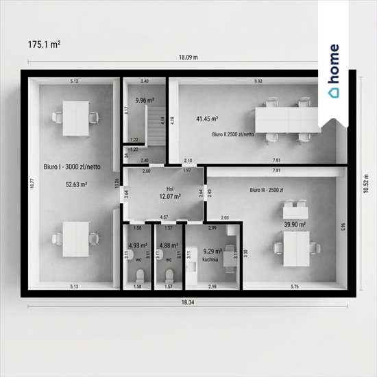 2.) Lokal o pow. 39,90 m² – czynsz 2 500 zł netto/mies.