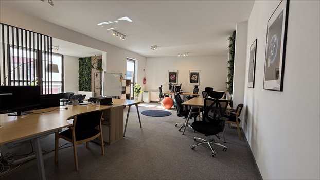 W skład lokalu wchodzi open space z możliwością jej podzielenia. Dodatkowa przestrzeń to pokój socjalny wyposażony w lodówkę, zlew, zmywarkę i szafki kuchenne oraz toaletę. Na życzenie istnieje możliwość pozostawienia umeblowania za dodatkową opłatą.