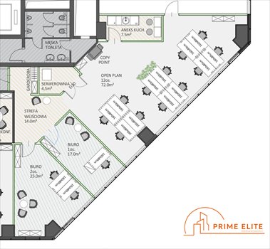 zachęca do wynajmu jednego z trzech biur na VIII piętrze nowoczesnego biurowca przy Al. Jerozolimskich na Ochocie. Biura mieszczą od 12 do 15 pracowników.