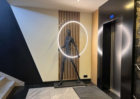 W budynku znajduje się recepcja z całodobową ochroną, kuchnie, toalety.