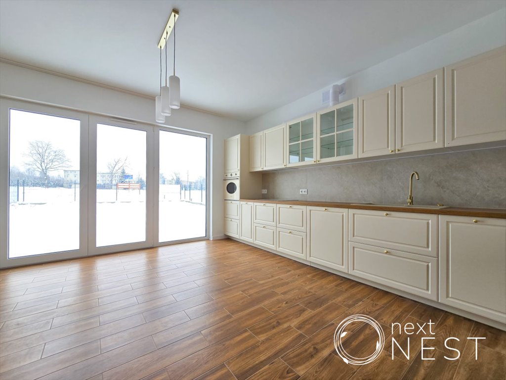 Na parterze znajdują się salon z jadalnią, kuchnia, łazienka garderoba, przedpokój i garaż. Na piętrze 3 pokoje, 2 łazienki i schowek. Na podłogach panele i gres. Do dyspozycji najemców duży ogród.