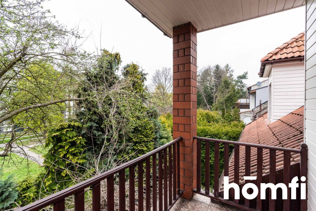 Dwupoziomowy dom położony jest na pięknie zagospodarowanej działce. Dobrze przemyślany ogród nie wymaga dużych nakładów pracy a jednocześnie pozwala cieszyć się bliskością przyrody i czasem spędzonym na zewnątrz. Z tyłu domu znajdują się tereny zielone, co sprawia, że relaks w ogrodzie nie jest zakłócony hałasami z ulicy.