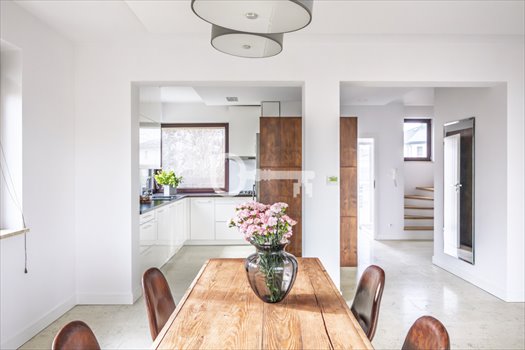 Dom po generalnym remoncie, położony na końcu zamkniętego osiedla, co zapewnia ciszę i prywatność. Jako jedyny w inwestycji jest wolnostojący, otoczony samodzielnym, dużym, zielonym ogrodem. Wnętrza są jasne i przestronne, a salon z kominkiem tworzy ciepłą, przytulną atmosferę.