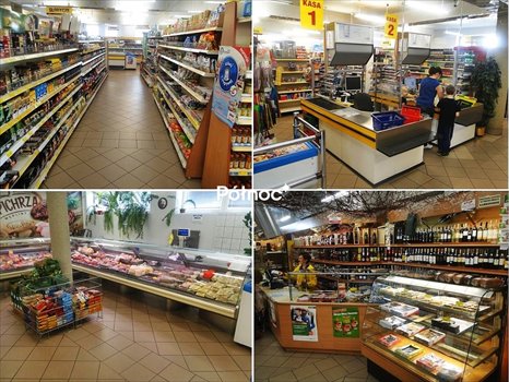 Witryny sklepu skierowane bezpośrednio na główną, ruchliwa ulicę. W pobliżu szkoły, osiedle mieszkalne, przychodnie i dworzec PKS. Budynek oddalony jest o 0,5 km od głównej DK94.