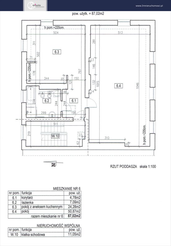 Całkowita powierzchnia lokalu to 87 m², w tym: