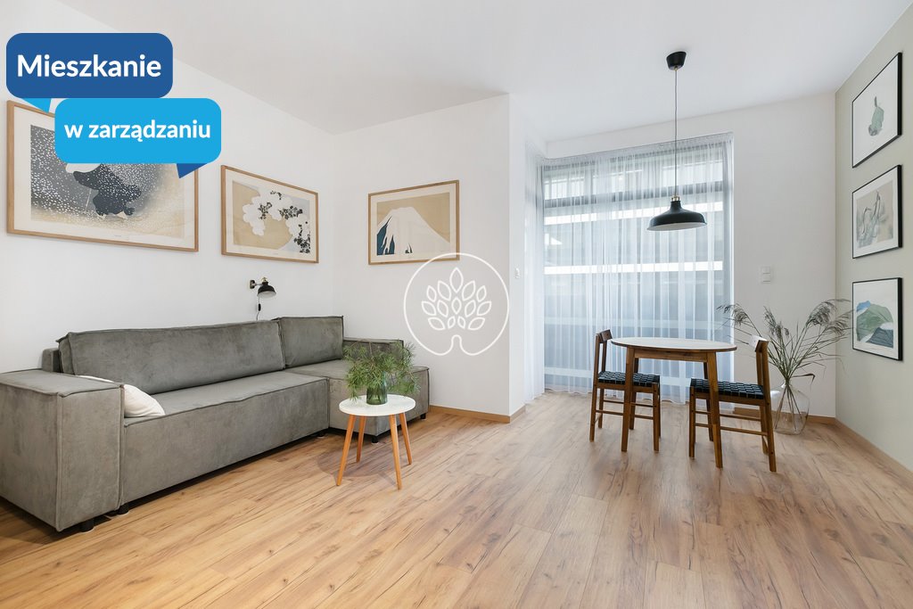 Apartament składa się z umeblowanego salonu z aneksem kuchennym, wyposażonego w kanapę, stół z krzesłami i sprzęt AGD i RTV (lodówka, zmywarka, piekarnik, płyta indukcyjna, okap, pralka, TV) z rozkładaną kanapą i pojemną szafą. Łazienka z prysznicem, toaletą oraz pralko - szuszarką. Do mieszkania przynależy komórka lokatorska w cenie najmu.