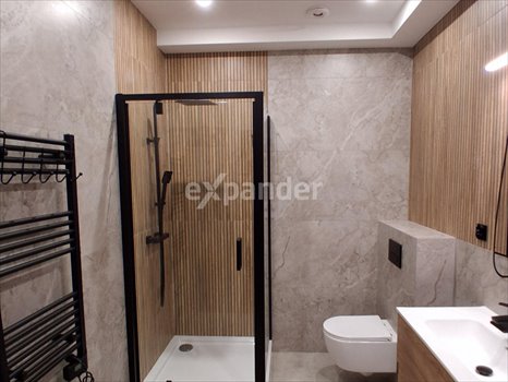 - łazienkę z WC wyposażoną w kabinę prysznicową i pralke