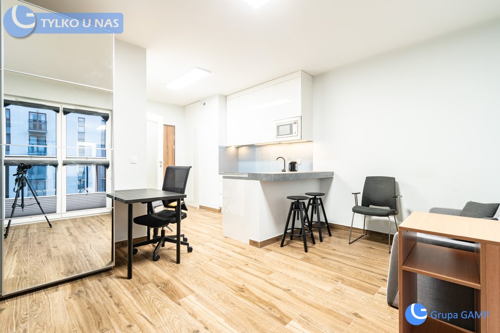 For rent from 1st FEBRUARY, fully furnished studio with an area of 29 m2 in the Krowodrza district in Krakow in the popular *Nowa 5 Dzielnica* investment. Property with a room with kitchenette, hall, bathroom and balcony. Possibility of additional equipment of the apartment.