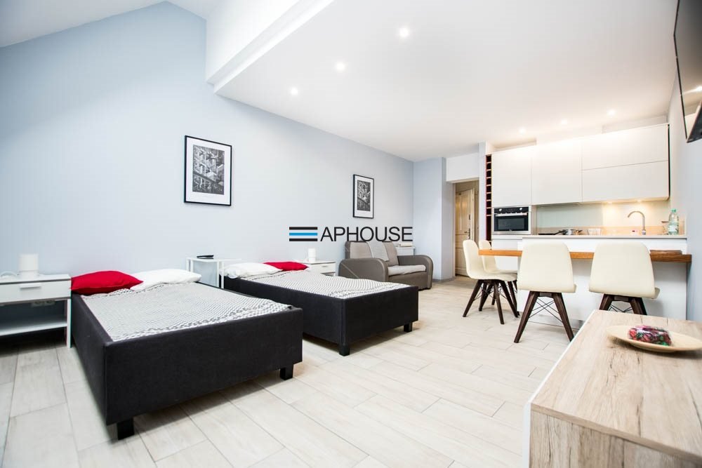 Nieruchomość zlokalizowana w luksusowej kamienicy z windą, co zapewnia komfort mieszkania. Kompletnie wyposażony aneks kuchenny (płyta grzewcza, piekarnik z funkcją mikrofali, lodówka z zamrażarką, zmywarka, zastawa, garnki itp.). Na wyposażeniu dwa łóżka pojedyncze (opcja zmiany na sofę z funkcją spania) oraz TV na mobilnym uchwycie. Łazienka z prysznicem i pralką.