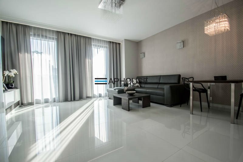 Mieszkanie znajduje się na drugim piętrze. Mieszkanie wykończone w wysokim standardzie. Przestronny salon połączony z aneksem kuchennym. Kuchnia jest w pełni wyposażona i umeblowana. W salonie znajduje się sofę z opcją rozłożenia oraz stół z krzesłami. Łazienka wyposażona w kabinę prysznicową. Przedpokój wyposażony jest w zabudowane szafy. Do mieszkania przynależy miejsce postojowe w garażu podziemnym.